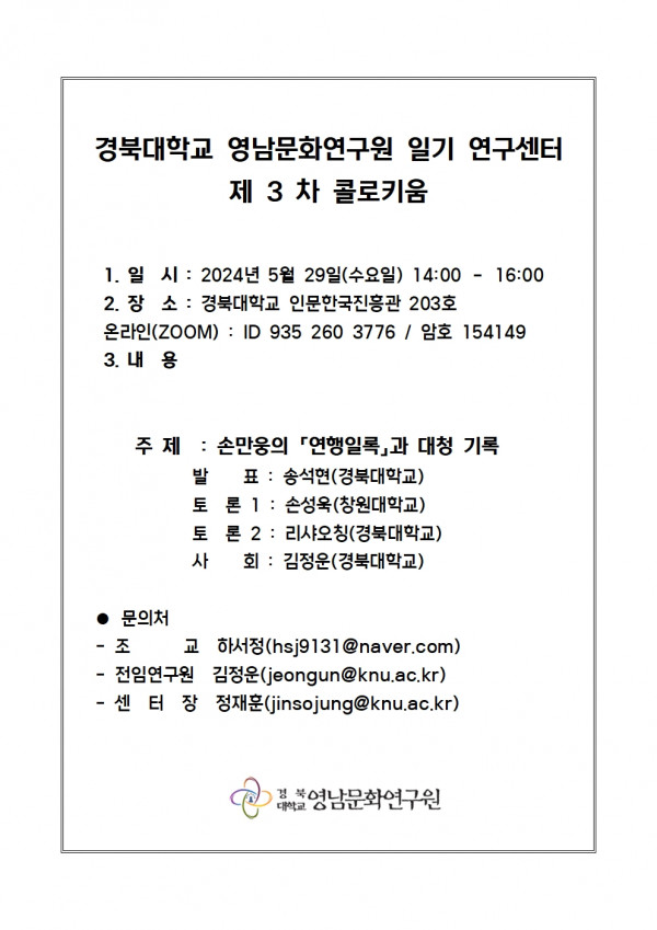 [경북대학교 영남문화연구원 일기 연구센터] 제3차 콜로키움(2024.05.29)