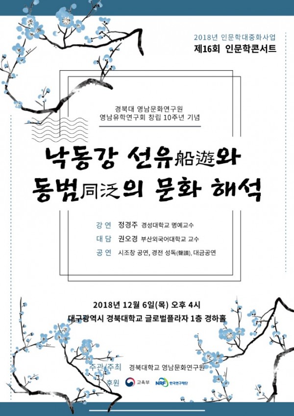 "낙동강 선유(船遊)와 동범(同泛)의 문화 해석"이라는 주제로 강연을 해주십니다.