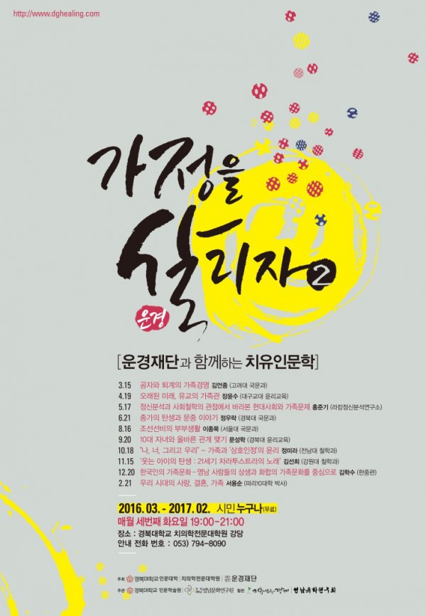 2016년 치유인문학_'가정을 살리자2' 강좌 순서