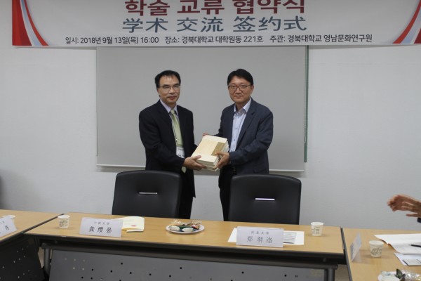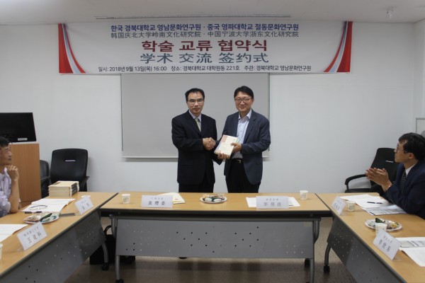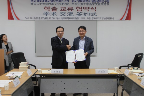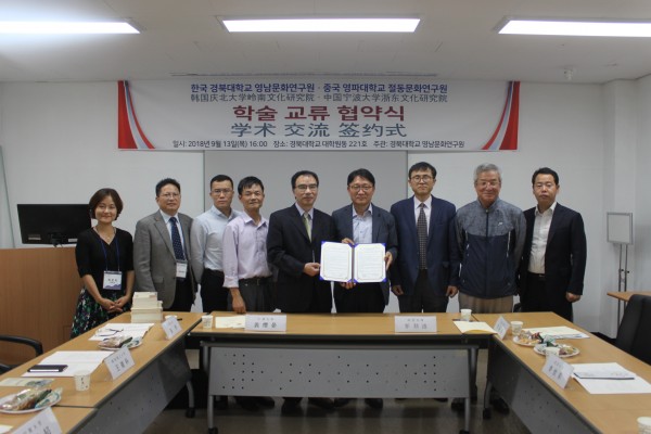 주제: 한국 경북대 영남문화연구원·중국 영파대 절동연구원 학술 교류 협약식